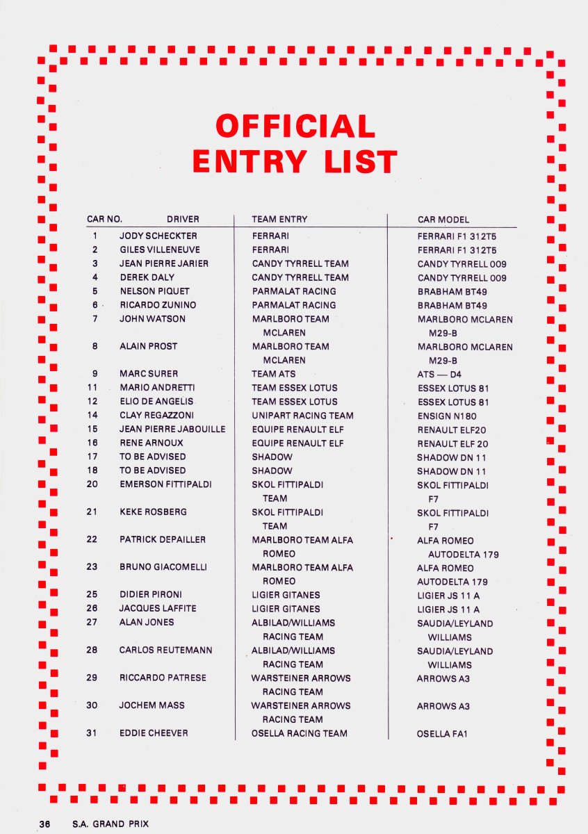 | Driven by: René Arnoux (F) | Result: winner - (198.250 kph) Grid: 2nd (1:10.2100) |