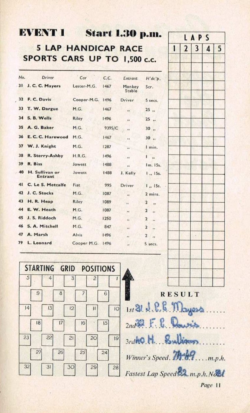 | Driven by: Jim Mayers (GB) | Result: winner - (127.927 kph) - margin: 8s3000 Grid: |