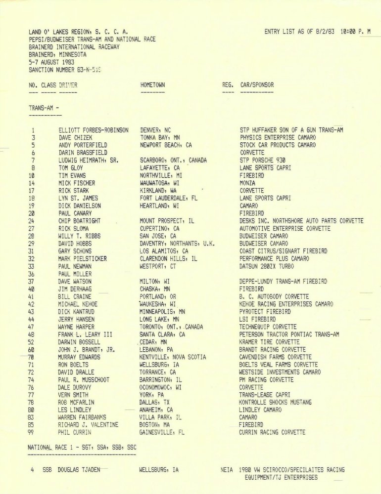 | Drivers listed: John Brandt (USA) | Result: did not arrive |