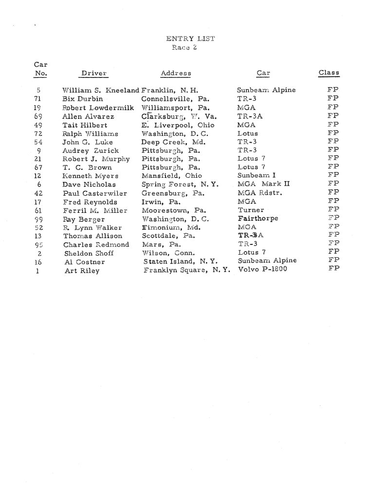 | Drivers listed: Tom Brown (USA) | Result: did not arrive (Not known if ran) |