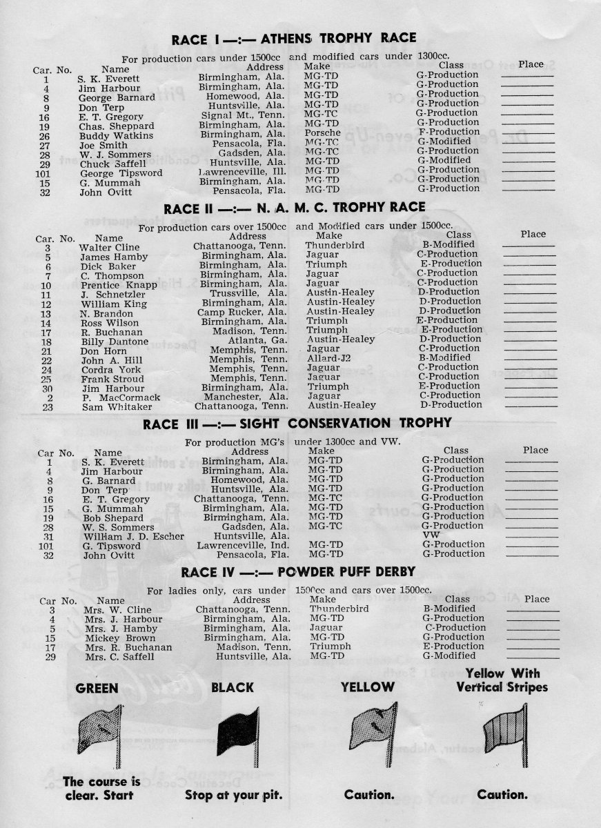 | Drivers listed: Audrey Saffell (USA) | Result: did not arrive (Not known if ran) |