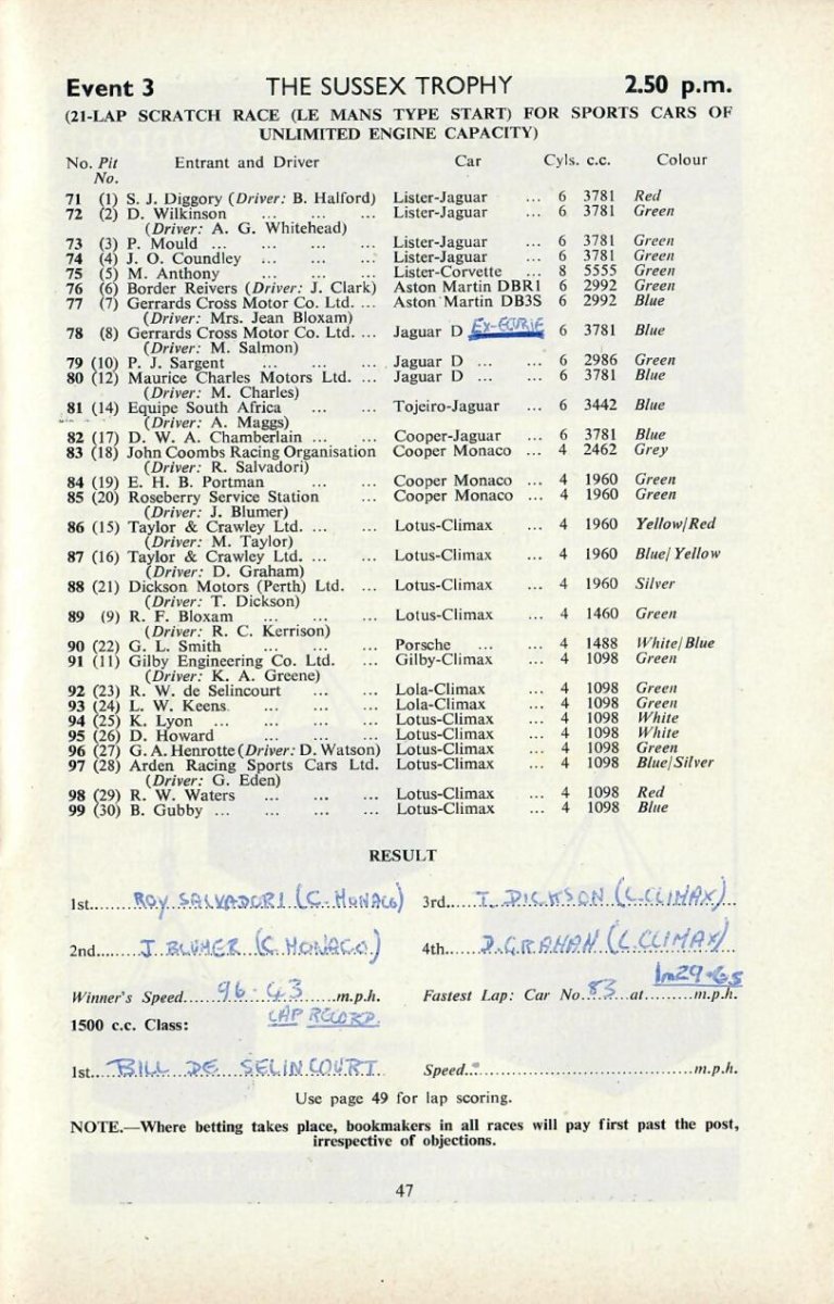 | Driven by: Roy Salvadori (GB) | Result: winner - (155.189 kph) - margin: 17s0000 Grid: |