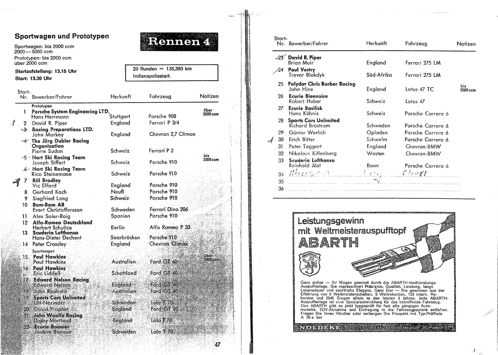 | Driven by: Vic Elford (GB) | Result: 5th 1st in P2.0 (1 lap behind the winner) Grid: |