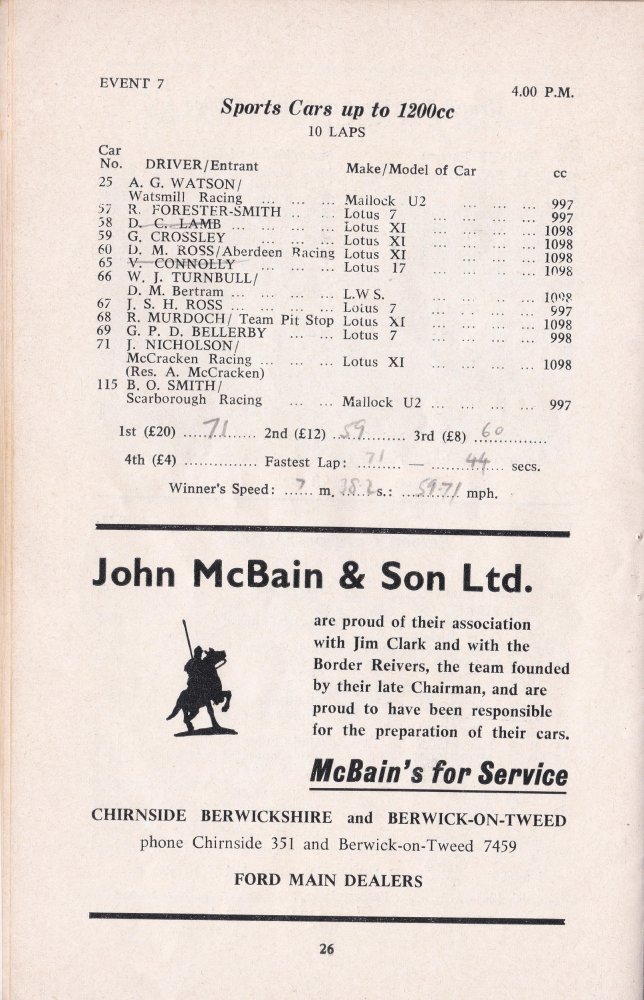 | Drivers listed: V. Connolly (GB) | Result: did not arrive (Not known if ran) |