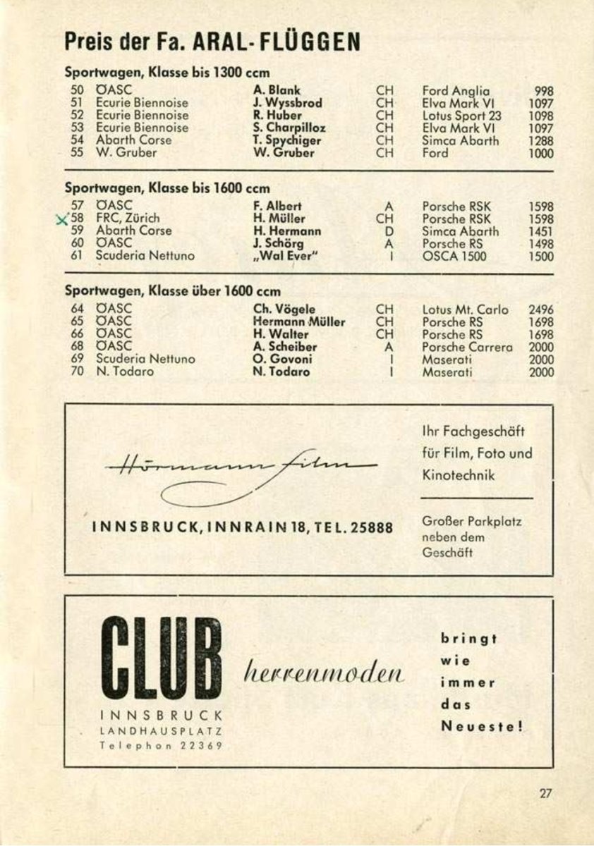 | Drivers listed: Willy Gruber (CH) | Result: did not arrive (Not known if ran) |