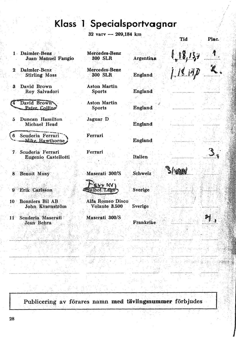 | Drivers listed: Erik Carlsson (S) | Result: did not arrive (Raced Ferrari) |