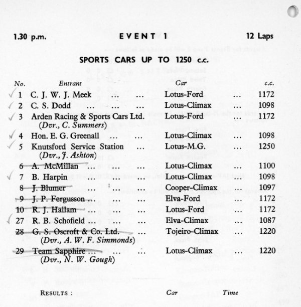 | Drivers listed: Bob Schofield (GB) | Result: did not arrive (Not known if ran) |