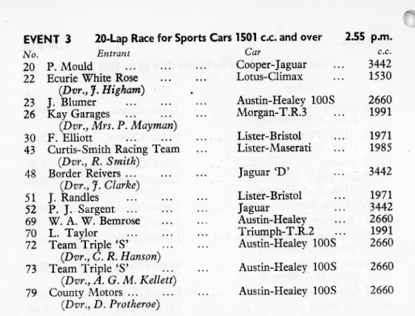 | Drivers listed: A. G. Kellett (GB) | Result: did not arrive (Not known if ran) |