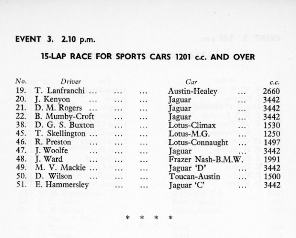 | Drivers listed: D. M. Rogers (GB) | Result: did not arrive (Not known if ran) |