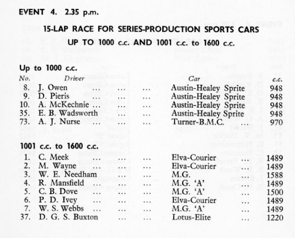 | Drivers listed: D. Pieris (GB) | Result: did not arrive (Not known if ran) |
