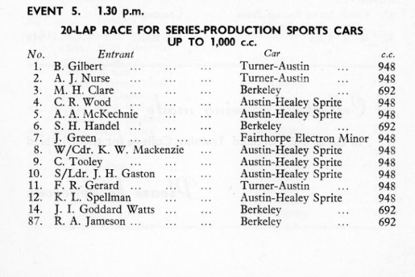 | Drivers listed: Barry Gilbert (GB) | Result: did not arrive (Not known if ran) |