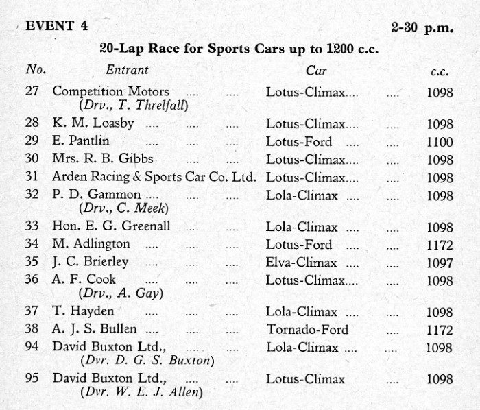 | Drivers listed: Chris Meek (GB) | Result: did not arrive (Not known if ran) |