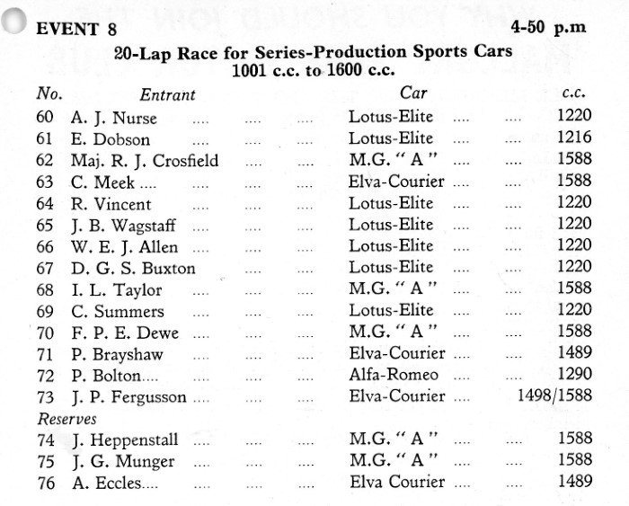 | Drivers listed: Dick Crosfield (GB) | Result: did not arrive (Not known if ran) |