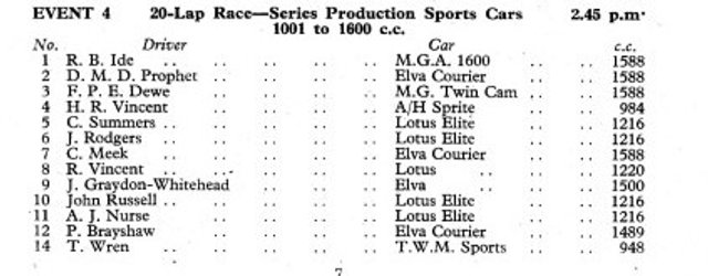 | Drivers listed: T. Wren (GB) | Result: did not arrive (Not known if ran) |