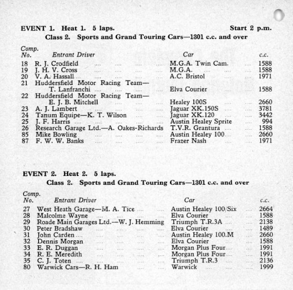 | Drivers listed: Dick Crosfield (GB) | Result: did not arrive (Not known if ran) |