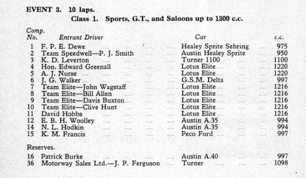 | Drivers listed: Patrick Burke (GB) | Result: did not arrive (Not known if ran) |