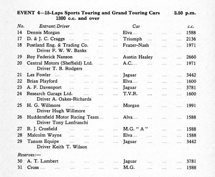 | Drivers listed: Les Fowler (GB) | Result: did not arrive (Not known if ran) |