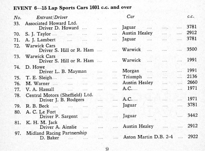 | Drivers listed: Vic Hassall (GB) | Result: did not arrive (Not known if ran) |