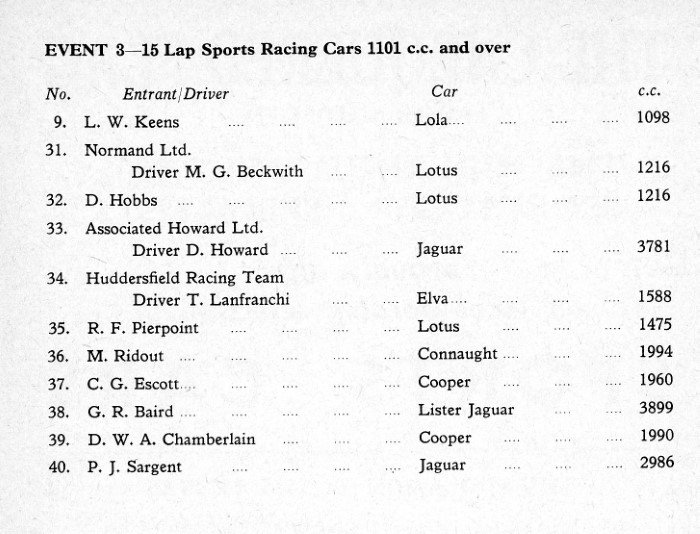 | Drivers listed: Peter Sargent (GB) | Result: did not arrive (Not known if ran) |
