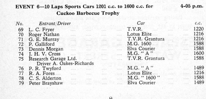 | Drivers listed: Peter Brayshaw (GB) | Result: did not arrive (Not known if ran) |