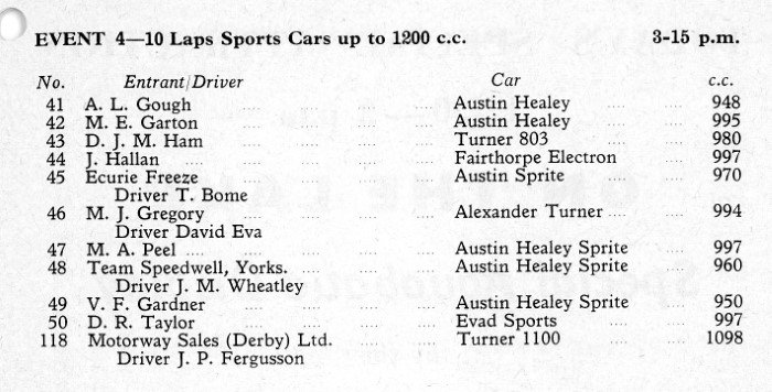 | Drivers listed: David Eva (GB) | Result: did not arrive (Not known if ran) |