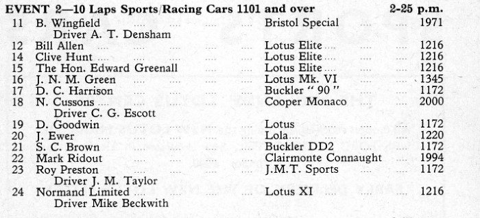 | Drivers listed: Mike Beckwith (GB) | Result: did not arrive (Not known if ran) |