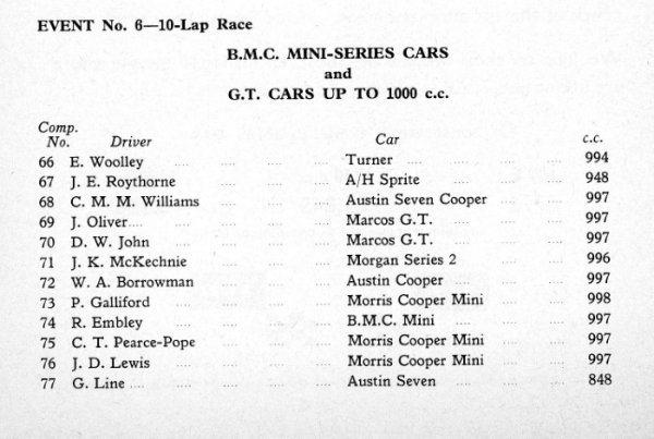 | Drivers listed: Jim Roythorne (GB) | Result: did not arrive (Not known if ran) |