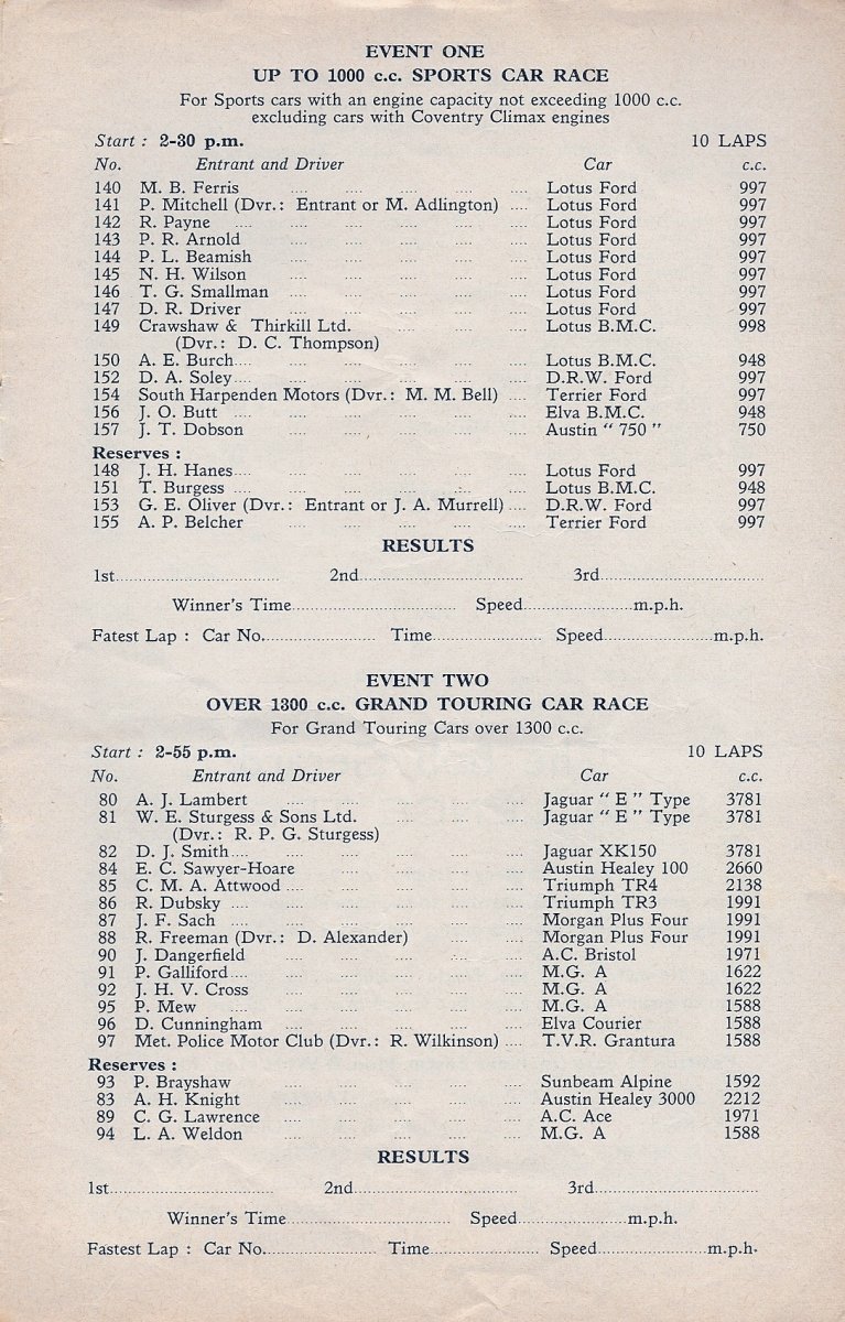 | Drivers listed: J. F. Sach (GB) | Result: did not arrive (Not known if ran) |