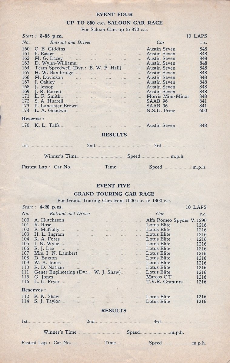 | Drivers listed: Bill Shaw (GB) | Result: did not arrive (Not known if ran) |