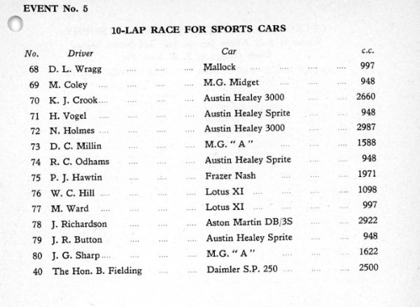 | Drivers listed: Ken Crook (GB) | Result: did not arrive (Not known if ran) |