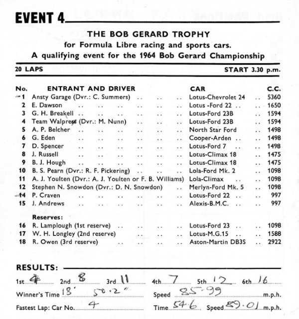 | Drivers listed: Paul Craven (GB) | Result: did not arrive (Not known if ran) |