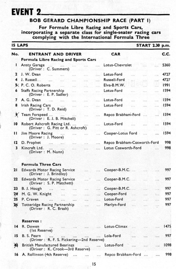 | Drivers listed: Roger Brash (GB) | Result: did not arrive |