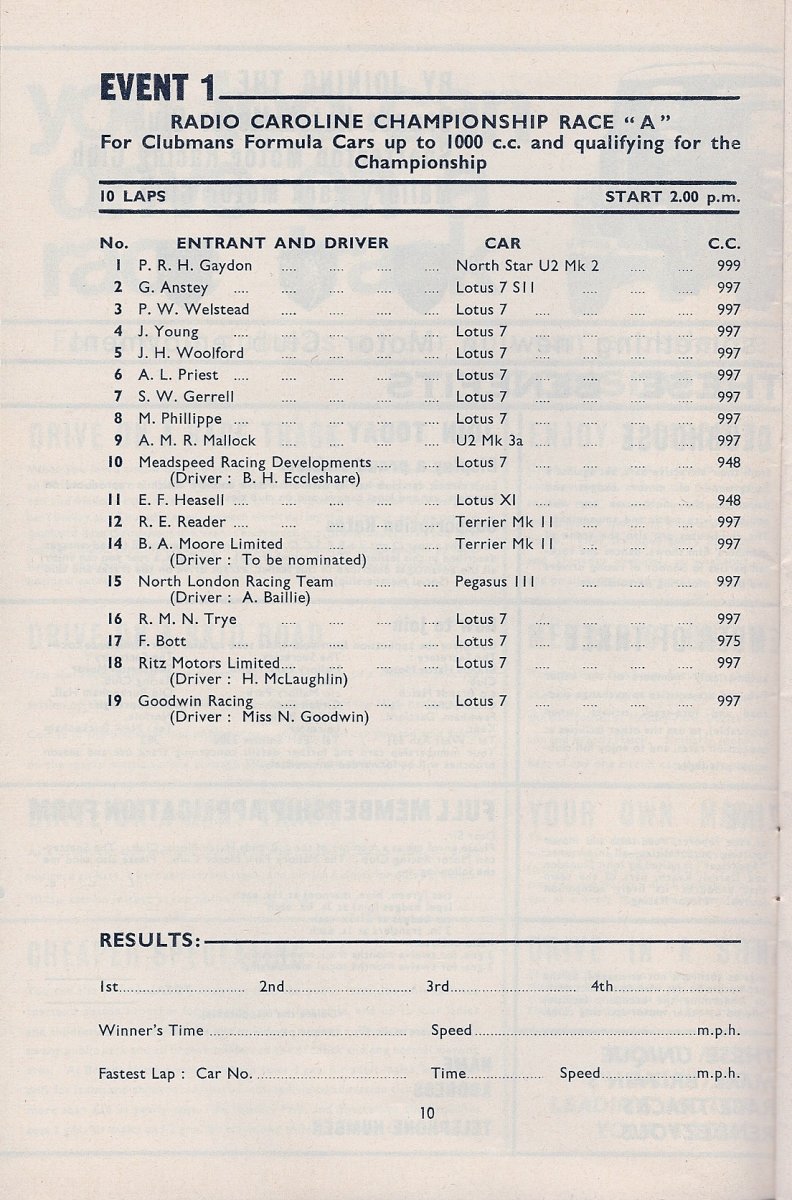 | Drivers listed: P. W. Welstead (GB) | Result: did not arrive (Not known if ran) |