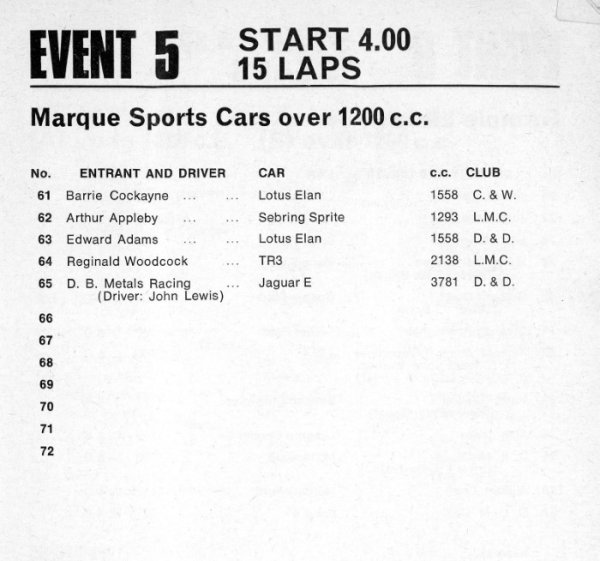 | Drivers listed: Barrie Cockayne (GB) | Result: did not arrive (Not known if ran) |