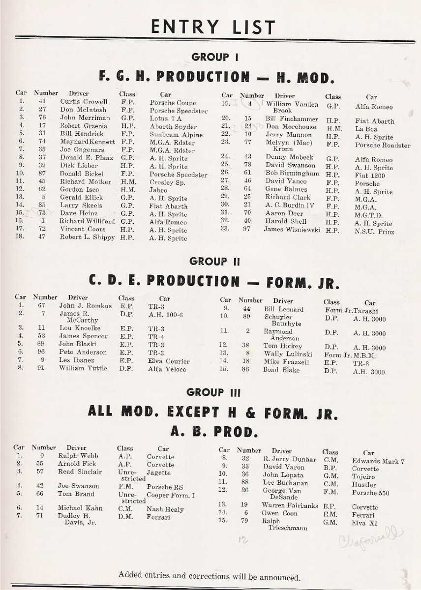 | Drivers listed: Joe Ongenars (USA) | Result: did not arrive (Not known if ran) |