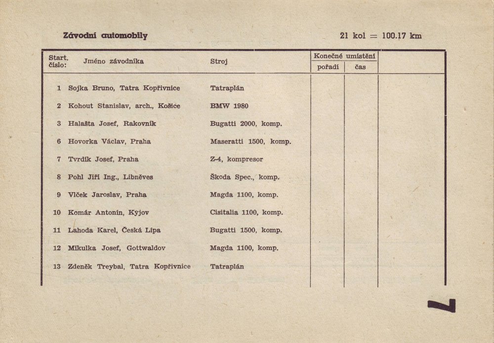 | Drivers listed: Karel Lahoda (CS) | Result: did not arrive (Not known if ran) |