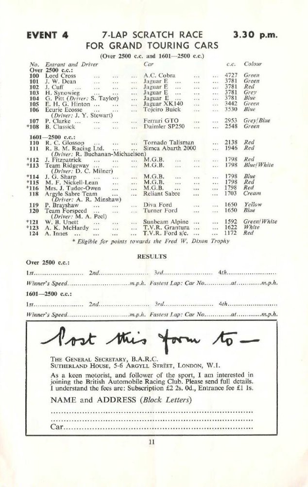 | Driven by: Brian Classick (GB) | Result: 11th (2m08s2000 behind the winner) Grid: |