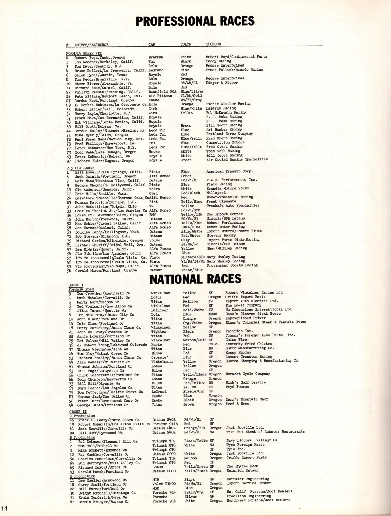 | Drivers listed: Garry Small (USA) | Result: did not arrive (Not known if ran) |