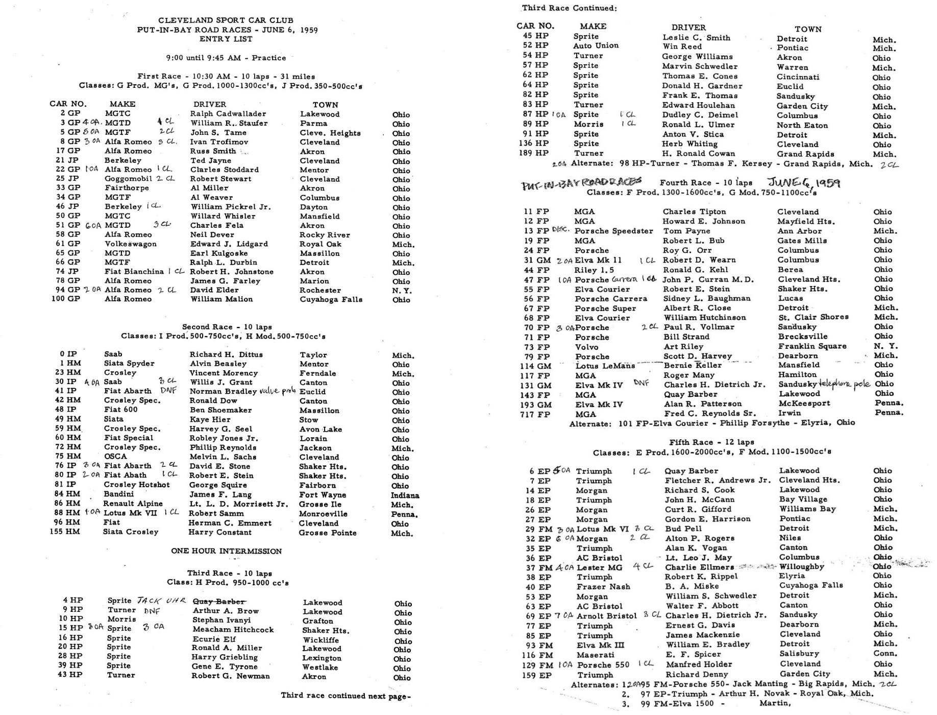 | Drivers listed: Roger Many (USA) | Result: did not arrive (Not known if ran) |