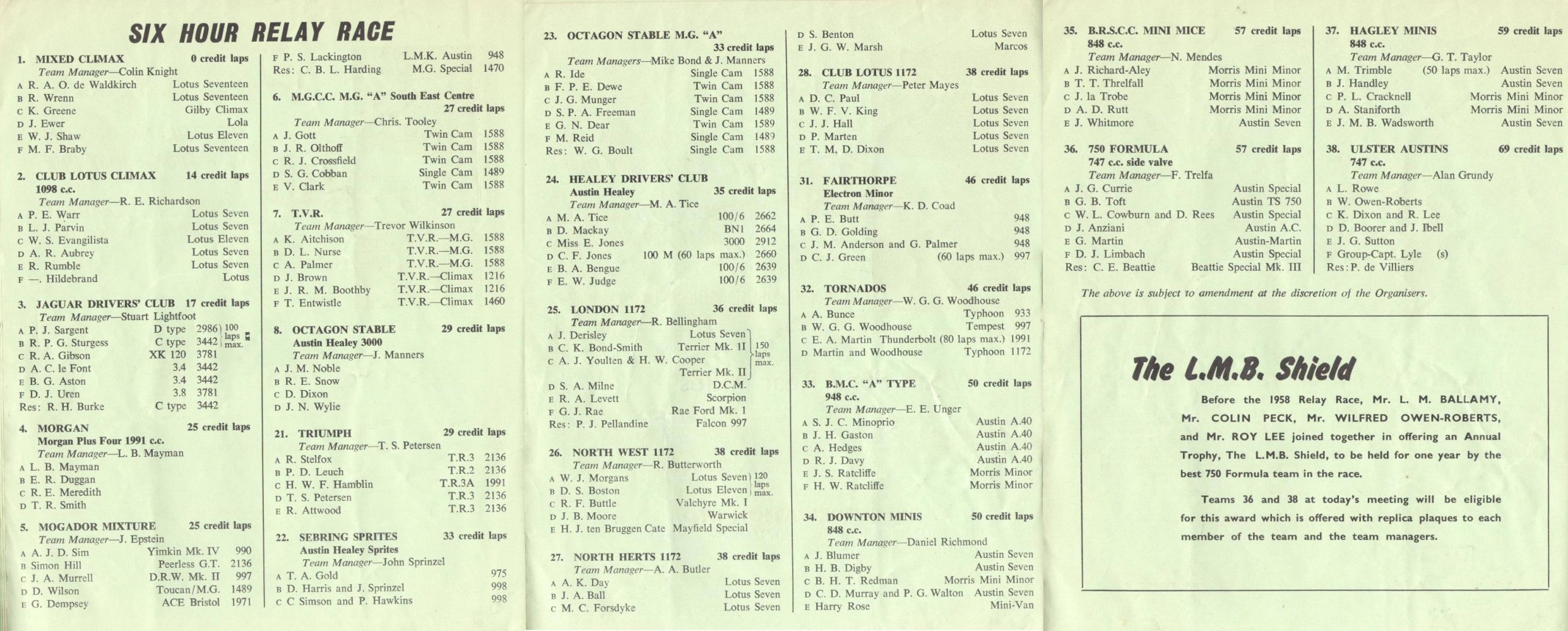 | Drivers listed: P. L. Cracknell (GB) | Result: did not arrive (Not known if ran) |