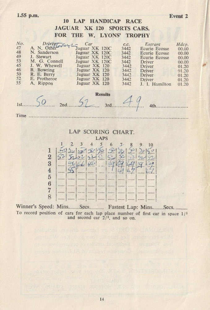| Drivers listed: J. W. Whewell (GB) | Result: did not arrive (Not known if ran) |