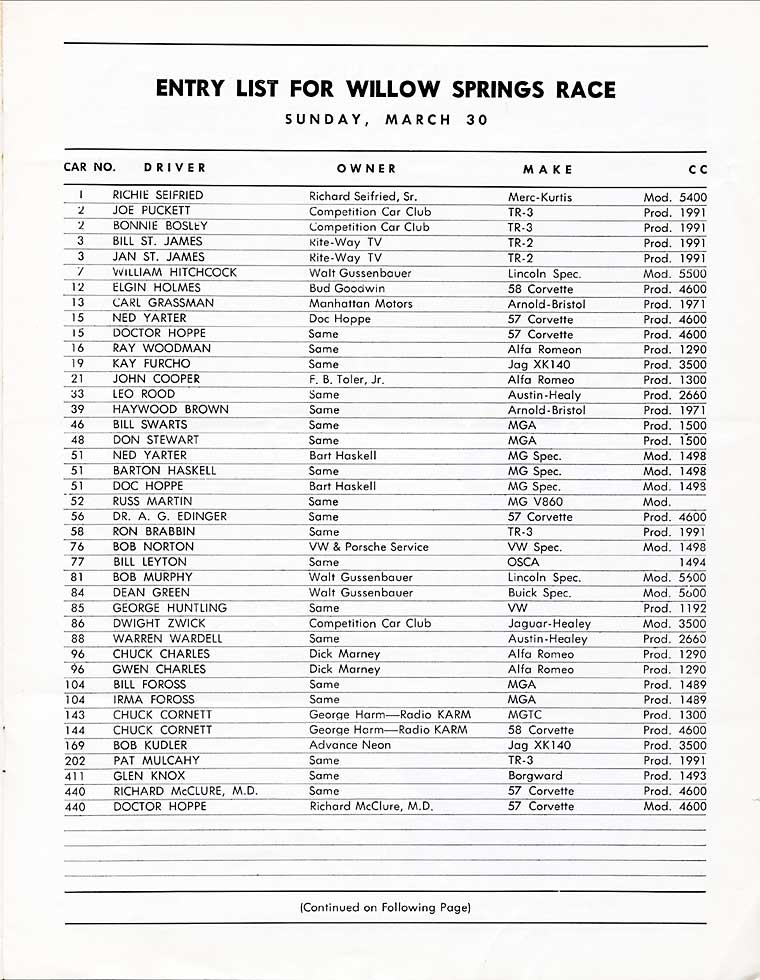 | Drivers listed: Kay Furcho (USA) | Result: did not arrive (Not known if ran) |