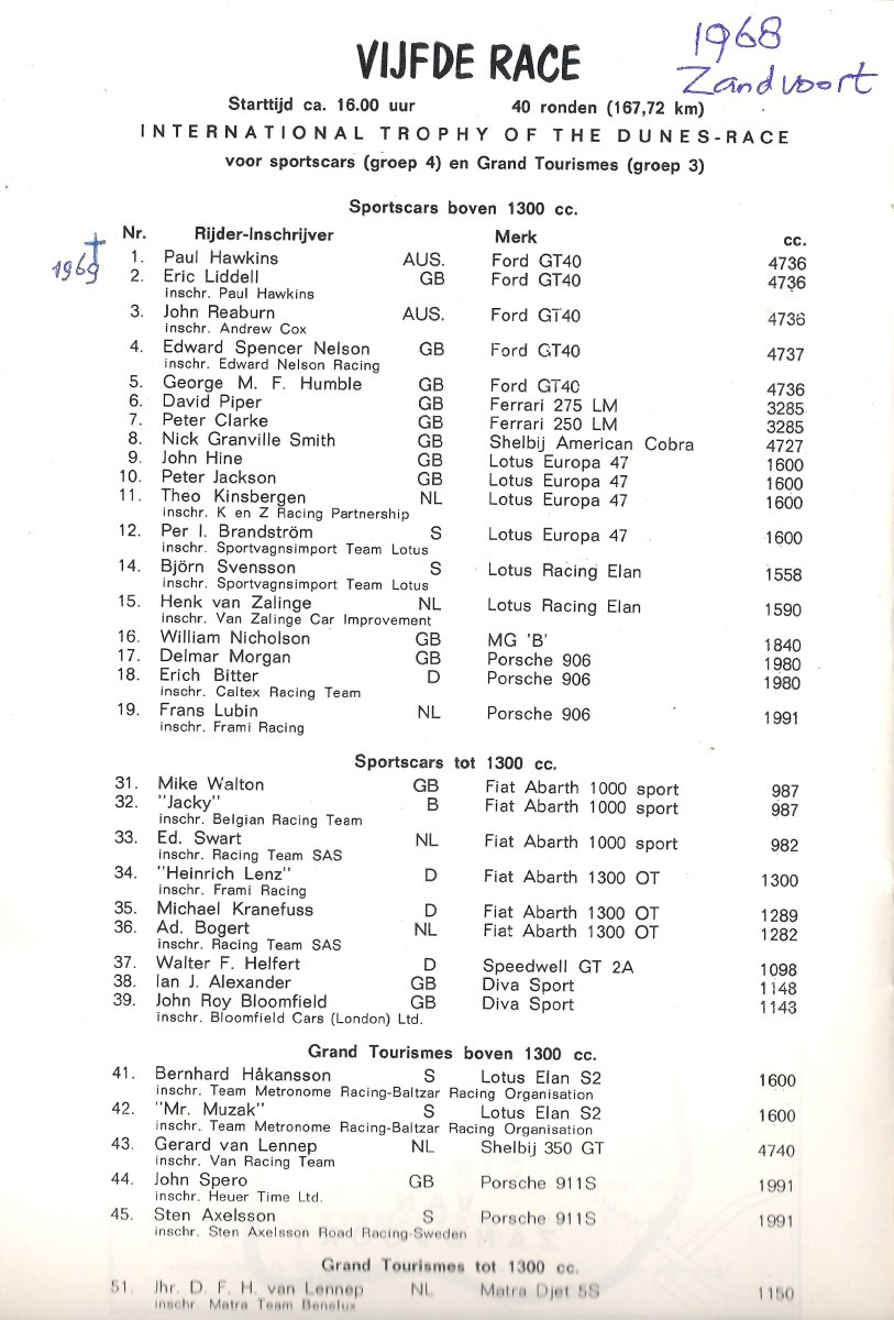 | Drivers listed: Henk van Zalinge (NL) | Result: did not arrive (Not known if ran) |
