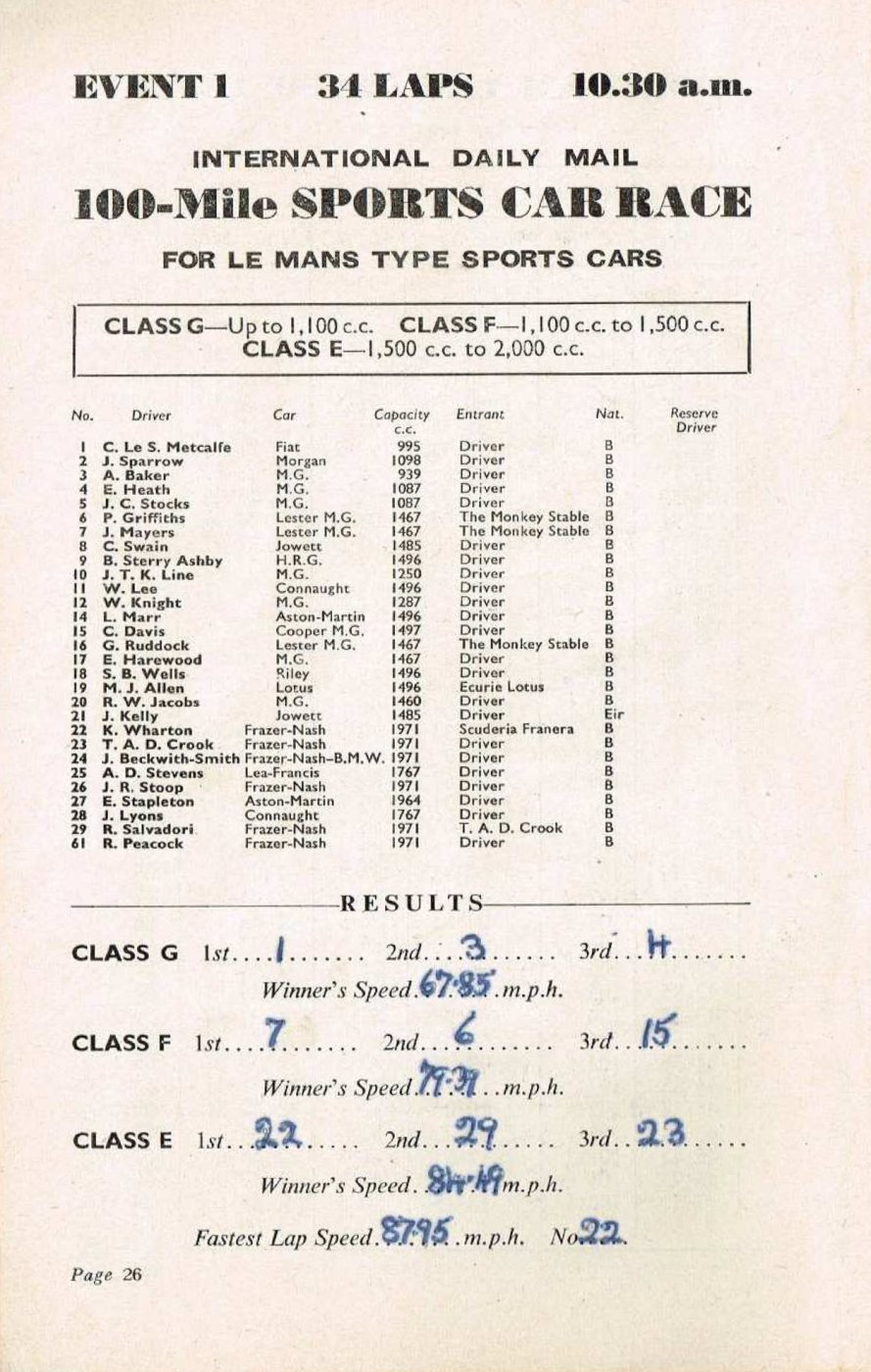 MG (7), Frazer Nash (6), Lester (3), Aston Martin (2), Connaught (2), Jowett (2)