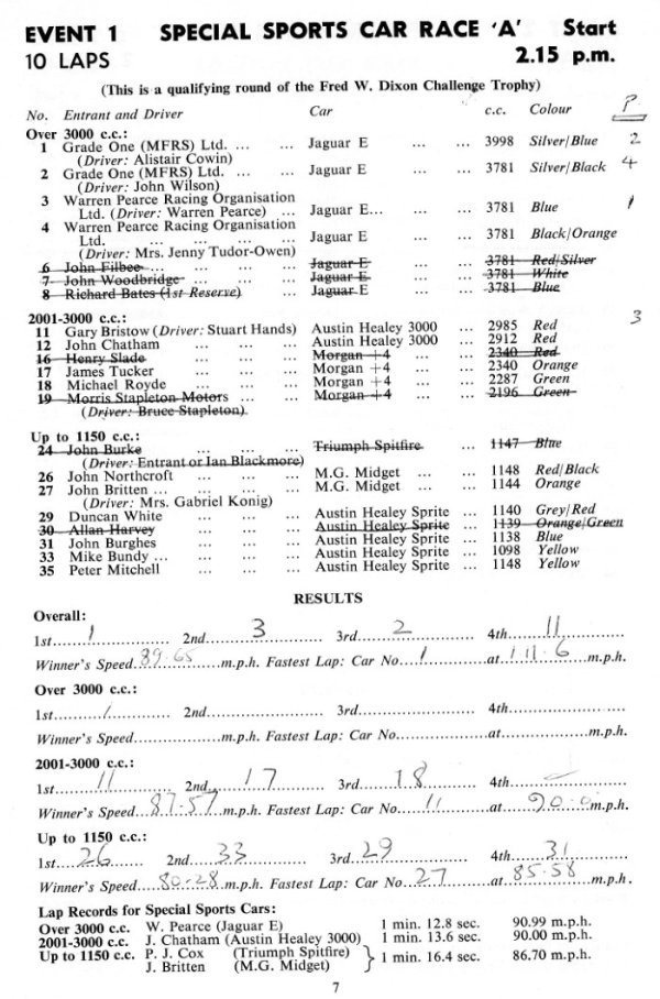 Jaguar E-type (4), Austin-Healey Sprite (4), Austin-Healey 3000 (2), Morgan Plus 4 (2), MG Midget (2)
