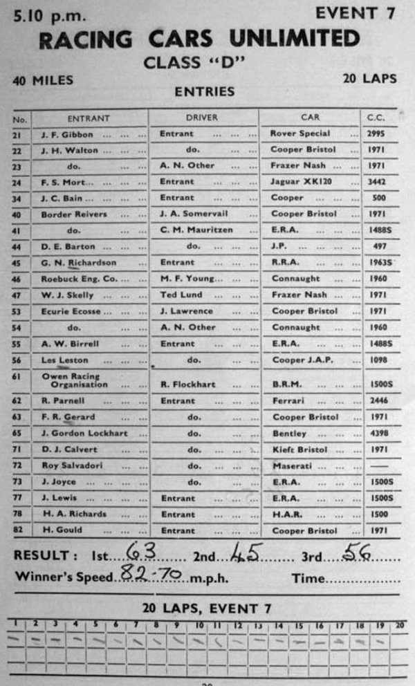 Bob Gerard (40), Les Leston (34), Roy Salvadori (32)
