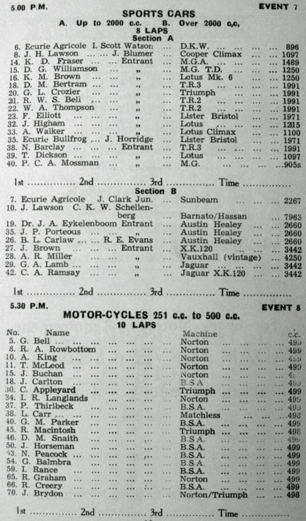 Austin-Healey (2), Lotus (2), Jaguar (2)