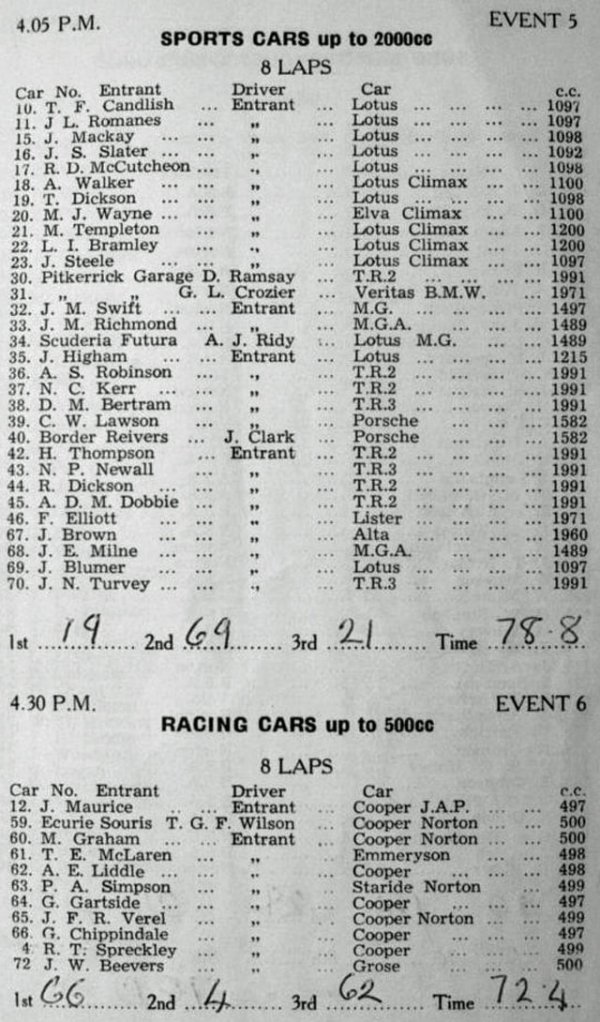 Lotus Eleven (8), Triumph TR2 (2), Porsche 356 (2)