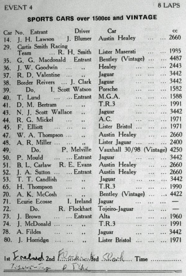 Ron Flockhart (35), Innes Ireland (28), Jim Clark (22)