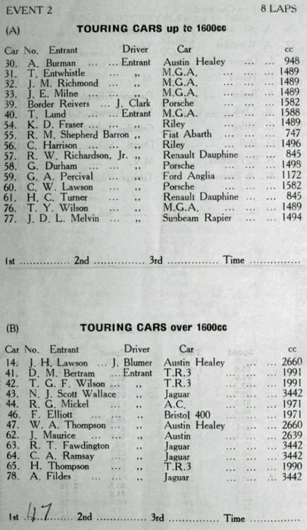 MG A (4), Jaguar XK120 (3), Porsche 356 (2), Renault Dauphine (2)